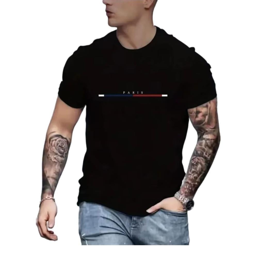 تميّز بإطلالة مريحة وعصرية مع هذا التي شيرت الرجالي الجديد بتصميمه الكلاسيكي والبسيط. يتميز بقصة بأكمام قصيرة وخامة مرنة جدًا توفر حرية حركة وانسيابية مثالية للارتداء اليومي، سواء في البيت أو أثناء الخروج.