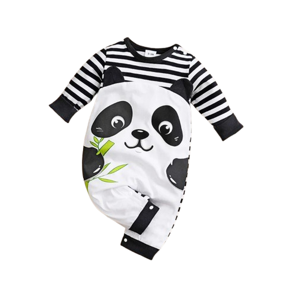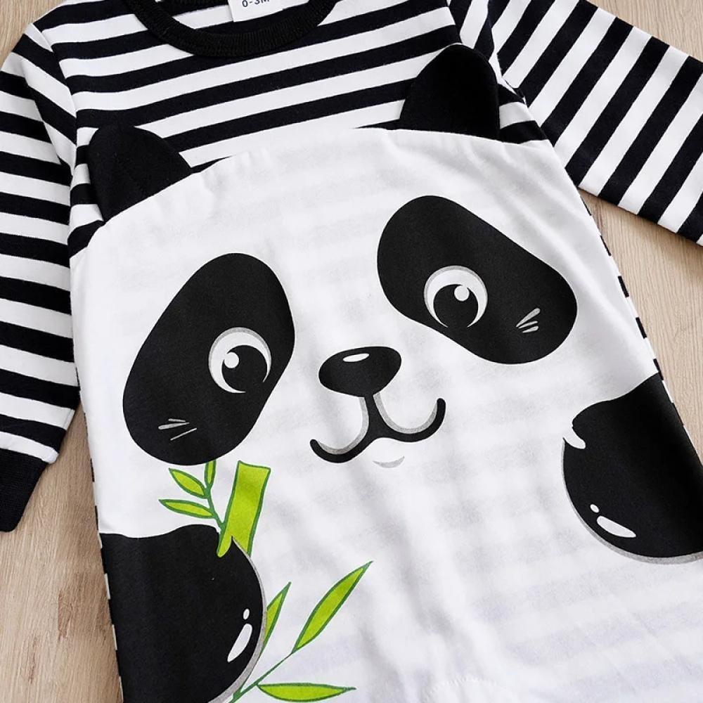 رومبر قطن 100٪ ناعم على بشرة البيبي، يجي بأكمام طويلة وتصميم باندا كرتوني ثلاثي الأبعاد يجنن!