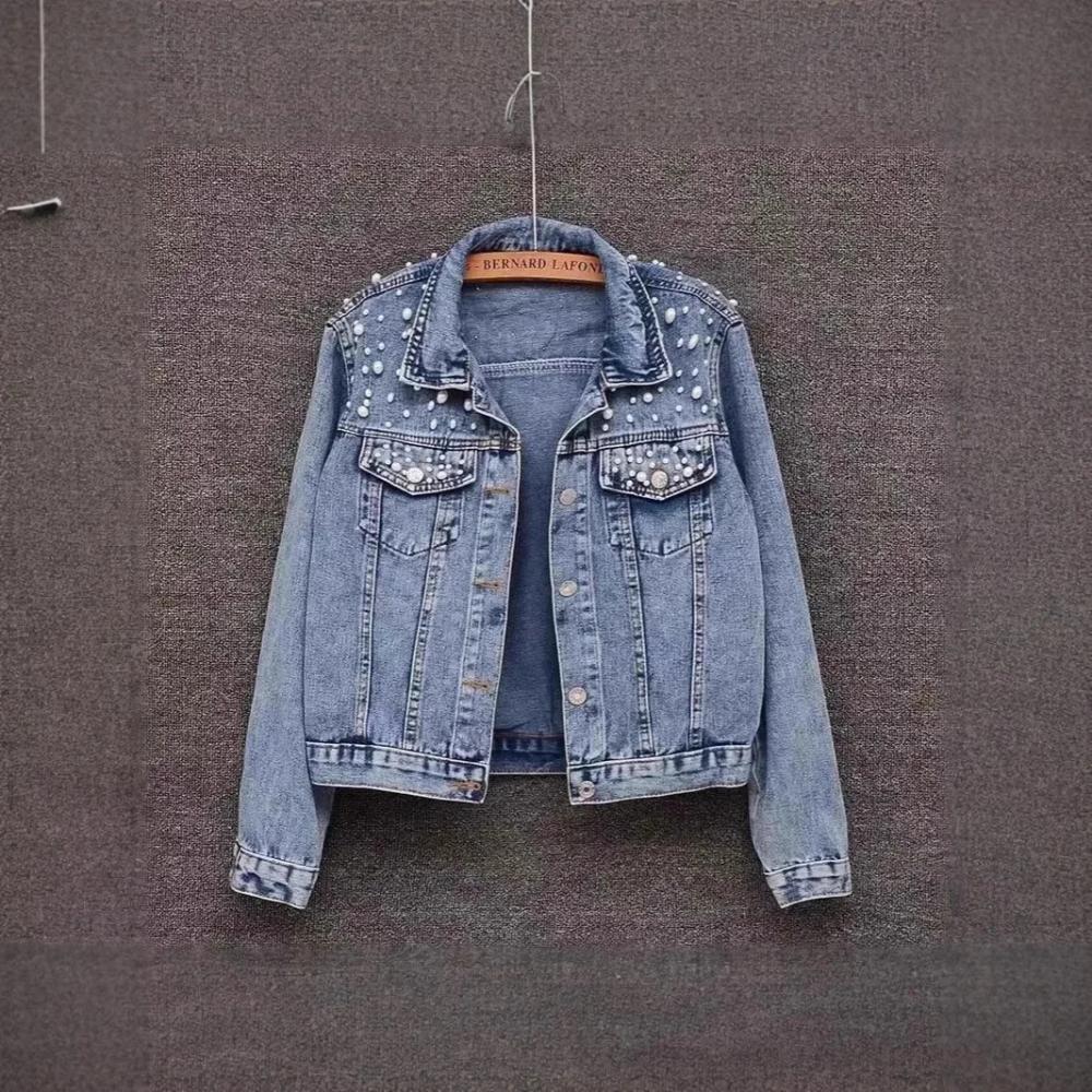 🧥 سترة جينز نسائية مزخرفة أنيقة